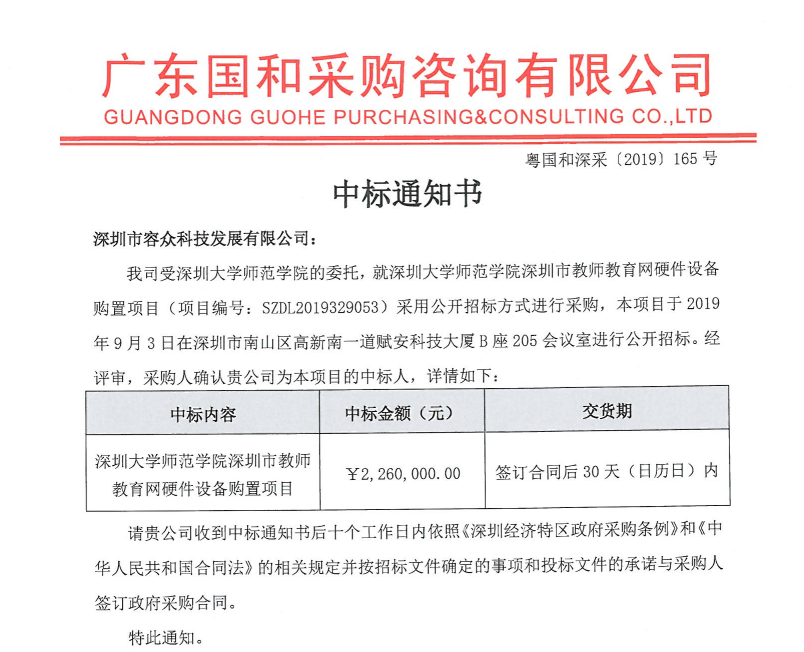 喜報:我公司中標《深圳大學師范學院教師教育網(wǎng)硬件設備購置項目》